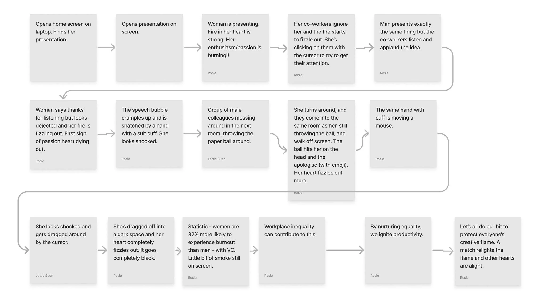 Refining our storyboard through multiple iterations, we ensured a visually compelling narrative with a clear call to action, emphasising the significance of storyboards as essential project sign-off documents. This also addressed the challenge of scrapping scenes, ensuring a narrative that resonates with our audience.