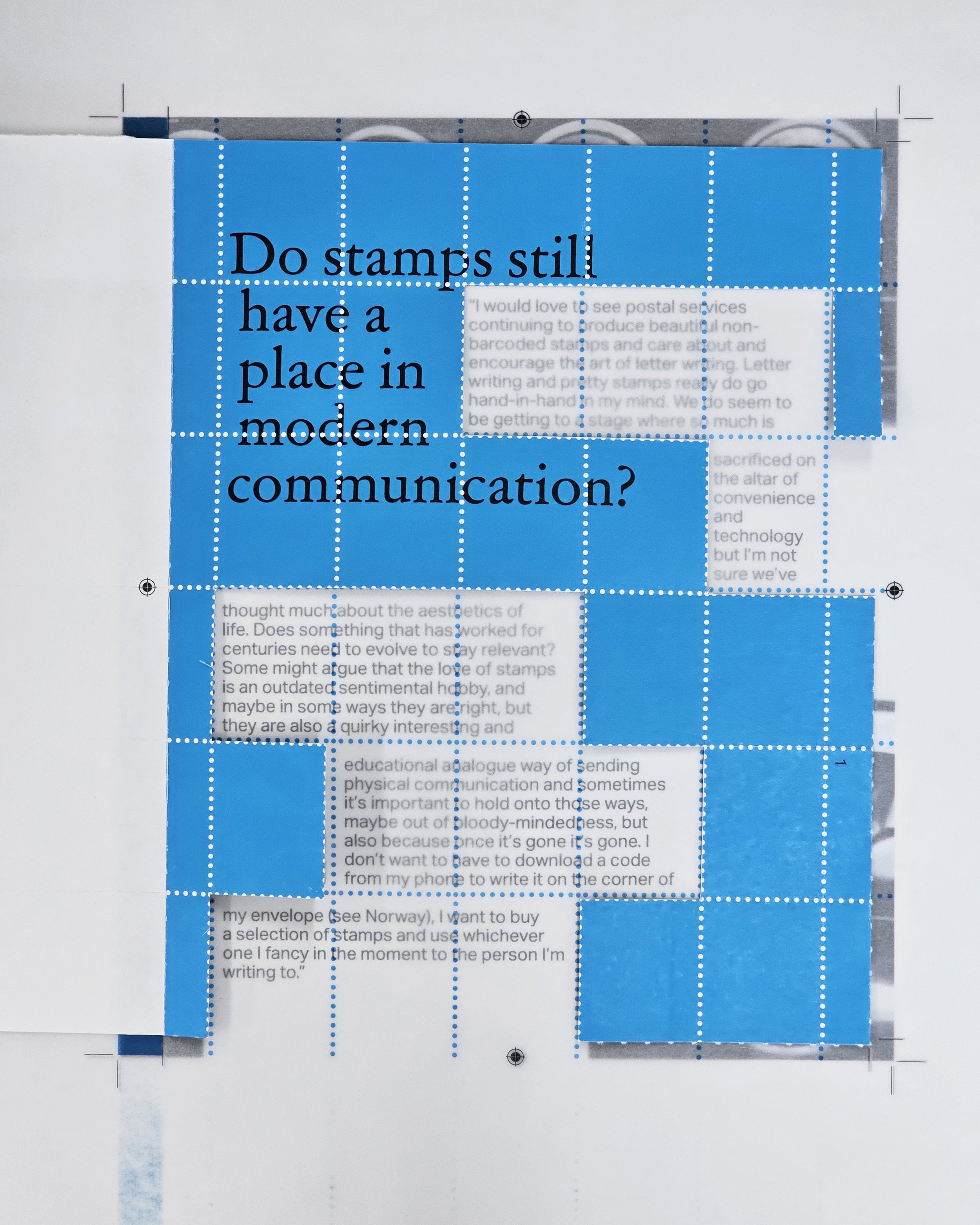 This stage focused on understanding the cultural and communicative role of stamps. I sketched early layouts and tested design directions while gathering primary references from museums and archives. I also reached out to The Handwritten Letter Appreciation Society for personal reflections on letter writing today, which helped ground the project in both historical context and lived experience.